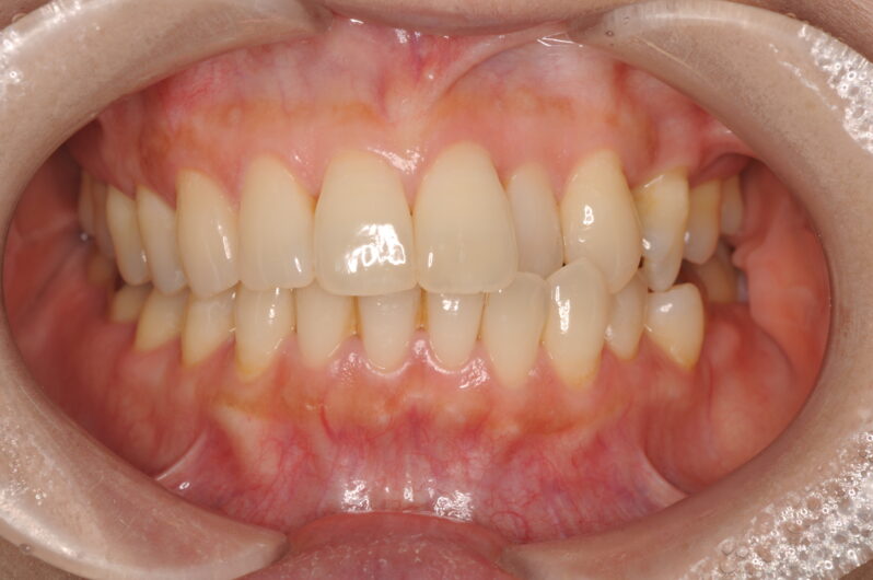 さらに、以前に左上の奥歯(5番目の歯)を抜いたままにしていたことで、歯並び全体が少しずつ変化し、かみ合わせのずれをさらに悪化させている状態でした。