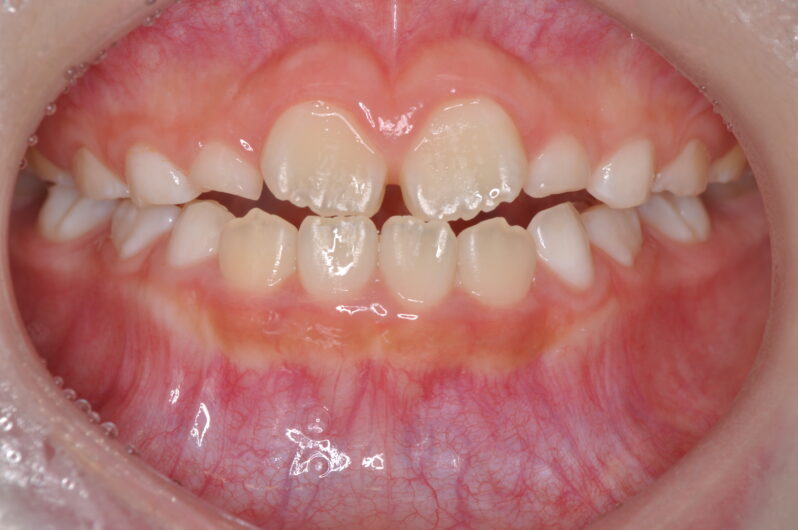 今回の女の子も初診時にははっきりと反対咬合の状態でした。このまま成長すると、治療が難しくなることが予測されました。