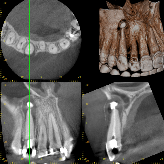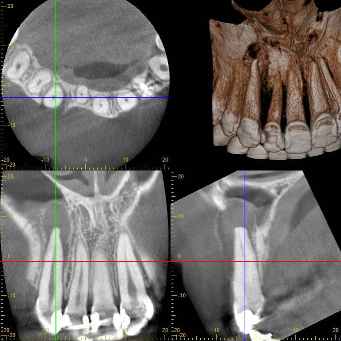 他院で根管治療を受けていたものの、腫れが引かず、CTの結果「大きな嚢胞があるため抜歯が必要」と診断されていました。